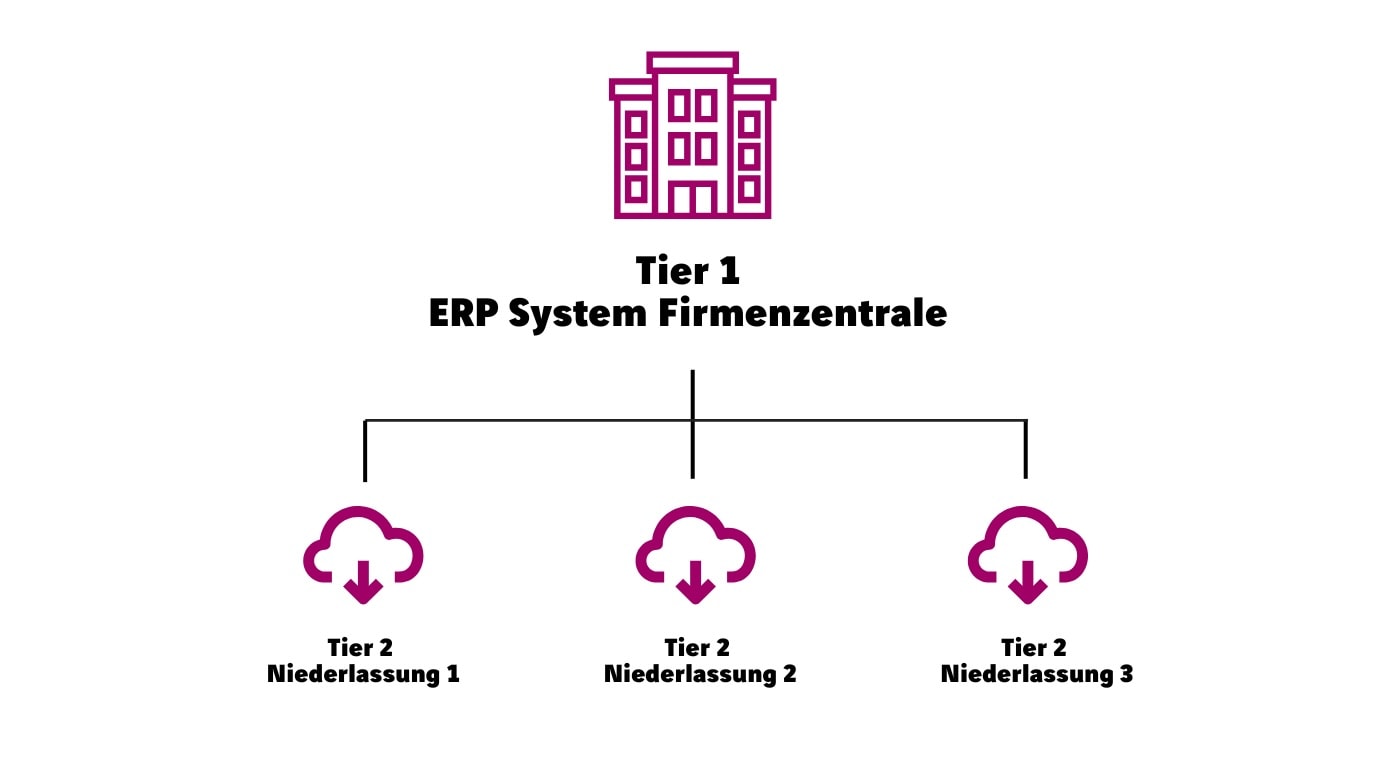 Eine 2-Tier-ERP-Strategie bezeichnet die Implementierung von zwei Ebenen (Tiers) unterschiedlicher ERP-Systeme: